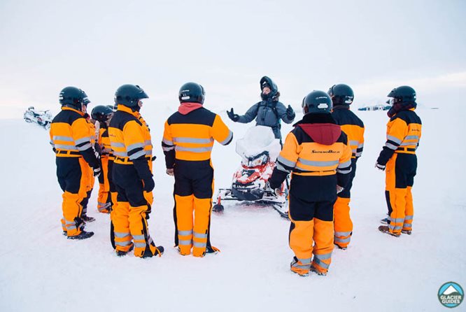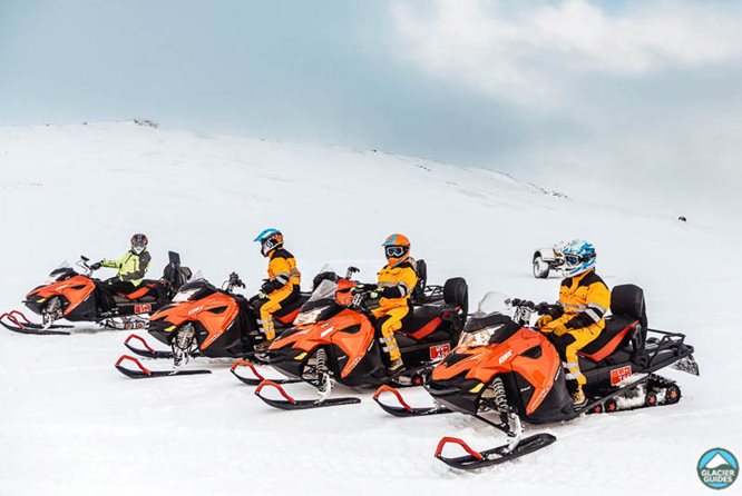 The price of the tour is for one person when sharing a snowmobile between two people. If you travel solo or if there’s an odd number of travelers, you must book a solo snowmobile for an additional fee.