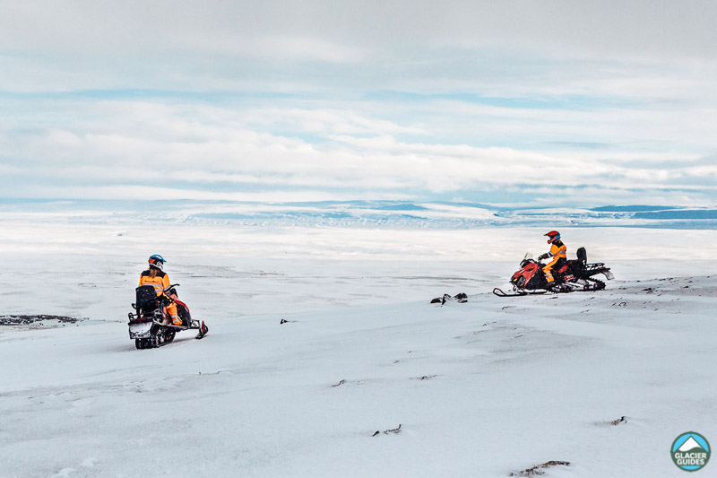 If you choose to travel from Húsafell, our guide will pick you up from Húsafell center. Here you can grab a bite, use the restroom, and stretch your legs. After a short break, we’ll drive to Langjökull Glacier (“the long glacier”), the second-largest glacier in Iceland, where our snowmobile adventure takes place.