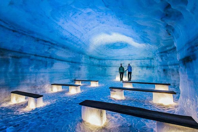 Step inside the icy depths of Langjokull through the ice tunnel that goes through the heart of the ice cap. Experienced geophysicists and engineers got together to build this state-of-the-art cave. The tunnel features pristine blue ice and reveals the most complex ice structures created by nature.