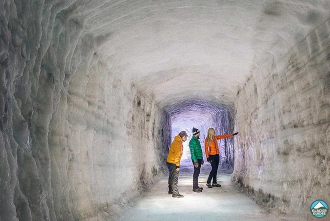 You’ll wander around the ice cave for about one hour. Take your time to explore the inside of the second-largest glacier in Iceland! Filled with unique ice sculptures of all shapes and sizes, the ice tunnel is a perfect location for beautiful photos. Don’t miss your chance to take pictures of the mesmerizing blue ice!