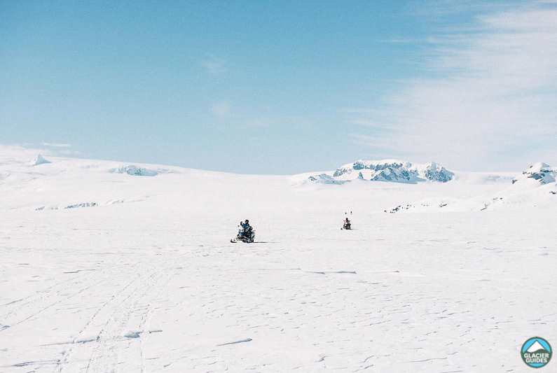 We’ll all meet at Flatey Dairy Farm, 24 mi (38 km) west of Höfn and 26 mi (42 km) east of Jökulsárlón Glacier Lagoon. From there we’ll drive you to the snowmobile start location.