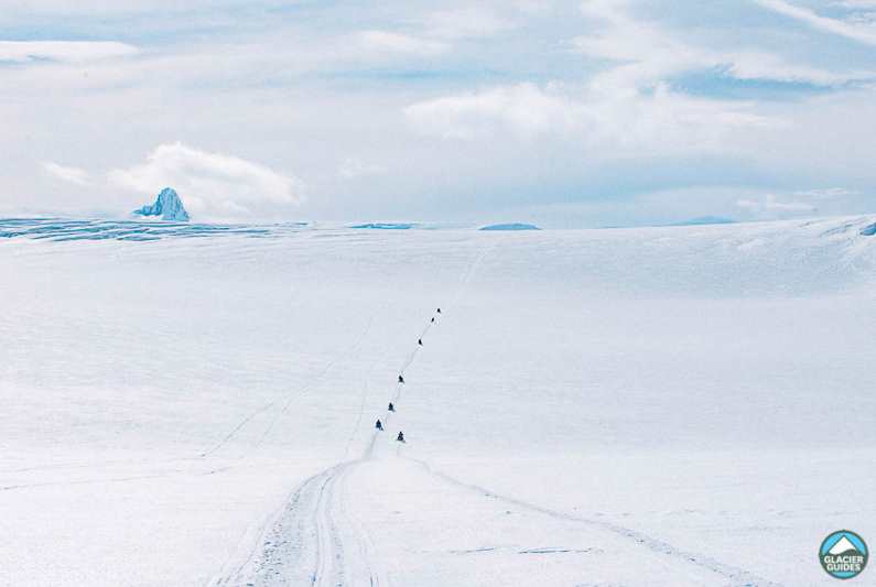 Enjoy a thrilling snowmobile ride across Vatnajokull Glacier, the largest glacier in Europe! On this unique journey, you’ll see the highest mountain in Iceland, active volcanoes, and incredible ice valleys. As you glide through the cinematic landscape, discover why Vatnajokull was featured in James Bond and Game of Thrones!