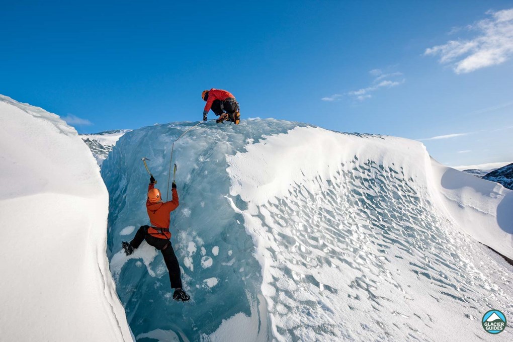 Book a guided Sólheimajökull Glacier walk and ice climbing tour to enjoy a small-group glacier experience with certified guides! Try out your ice climbing skills on a blue ice adventure tour with easy pick-up from Reykjavik or Solheimajokull.